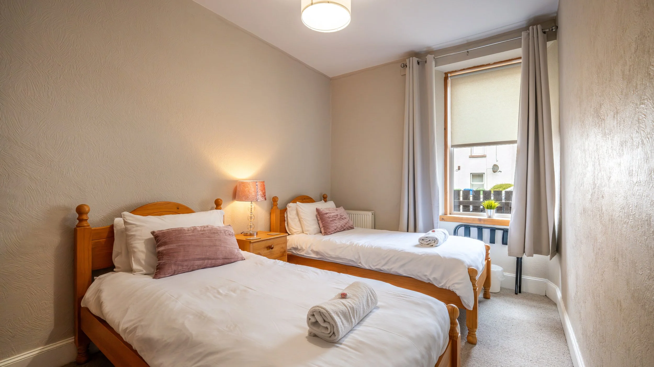 • Bedrooms: One comfortable double bedroom and a twin bedroom with two single beds.
